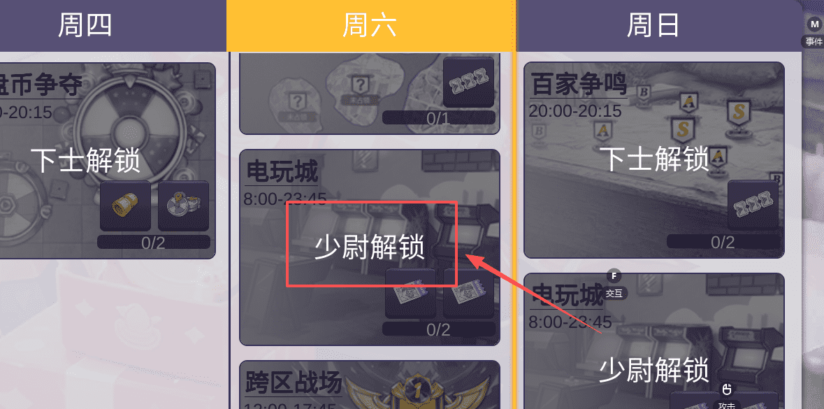 2、提前确认自己是否有资格参与电玩城或跨区战场这些玩法。