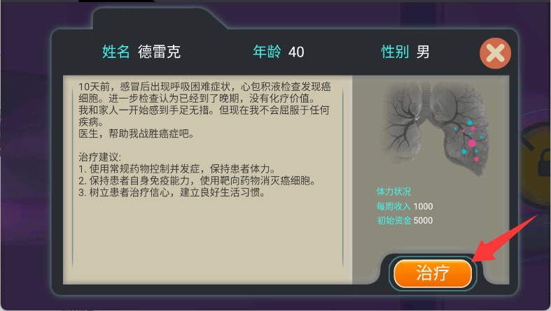 - 游戏中提供了放疗、化疗、手术、靶向药等多种多样的治疗方案,数十种不同的并发症及对症药物。