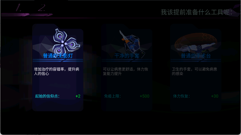 《肿瘤医师》是一款医生模拟类功能游戏,玩家所扮演的肿瘤医师需要在病人有限的经济收入和因病痛与化疗而持续下降的个人信心下,考虑最佳的治疗方案,在患者的体力、免疫力与癌细胞数量之间进行权衡。游戏赋予心态和生活习惯这两个“天赋”比较高的价值,玩家可以通过学习诸如戒烟、早睡早起、适当运动、淡定等达到降低癌细胞增长速度和提升患者体力与免疫力的目的。把这些信息融入游戏环节并设置成影响通关结果的核心要素,为其提供故事场景与对应后果,使玩家主动学习并形成“积极态度”“养好生活习惯”的思维。