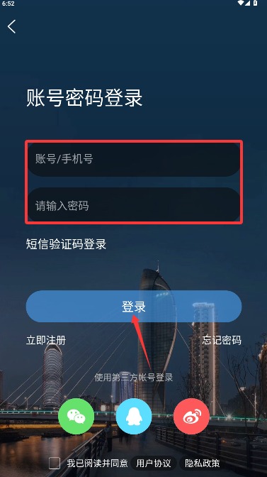 2、在登录页面输入已注册的账号或手机号及对应密码,完成验证后成功登录。