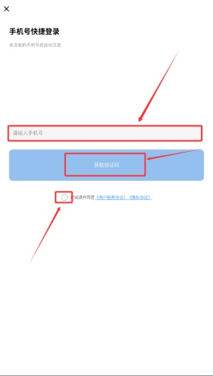 3、输入您的手机号码,并点击“获取验证码”按钮接收短信。