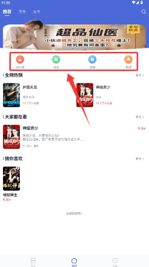 3、进入书城页面浏览分类榜单或通过搜索功能,查找感兴趣的文学作品资源。