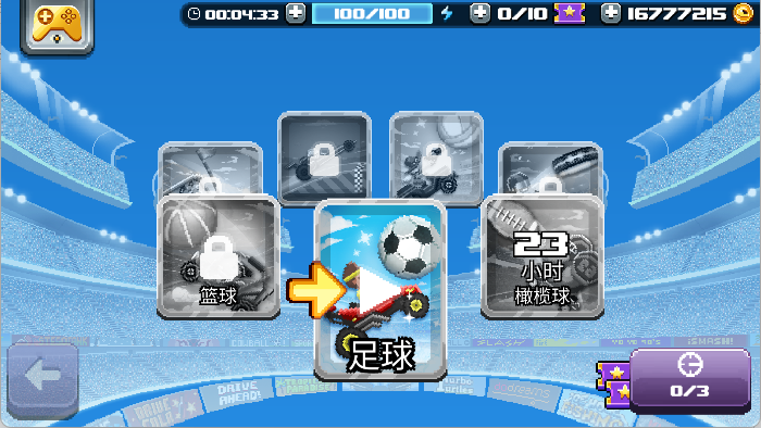 3、进入界面后在主菜单点击“选择模式”按钮,浏览竞速、足球、特技等不同玩法分类。