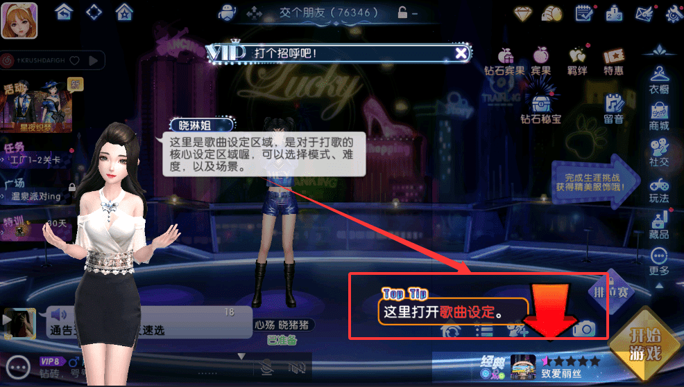 3、打歌前记得点开歌曲设定,选择喜欢的模式和难度,搭配钻石模型等外观,让表演更个性。