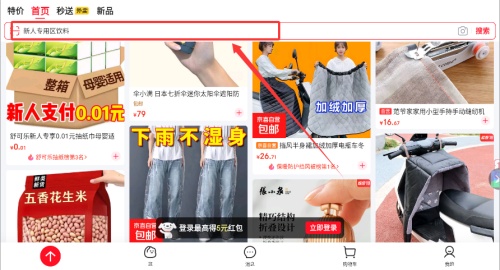 4、您也可使用顶部搜索框,输入商品关键词直接查找并购买目标商品。