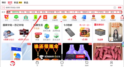 2、进入商城首页后,您可在分类区域点击所需商品类型,如家居或美妆。